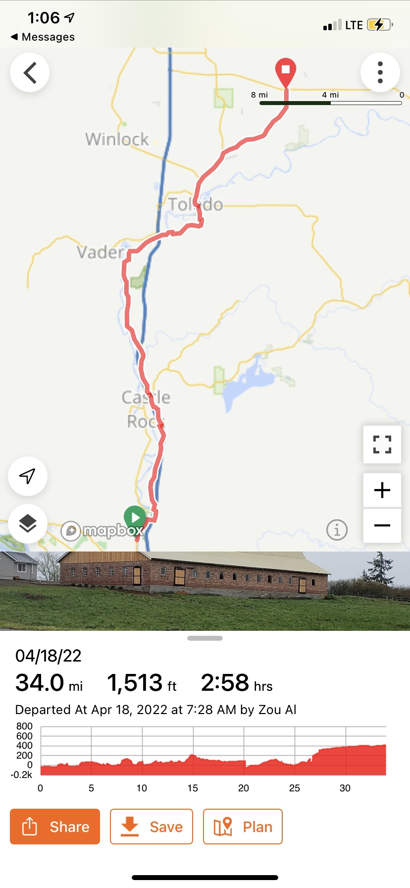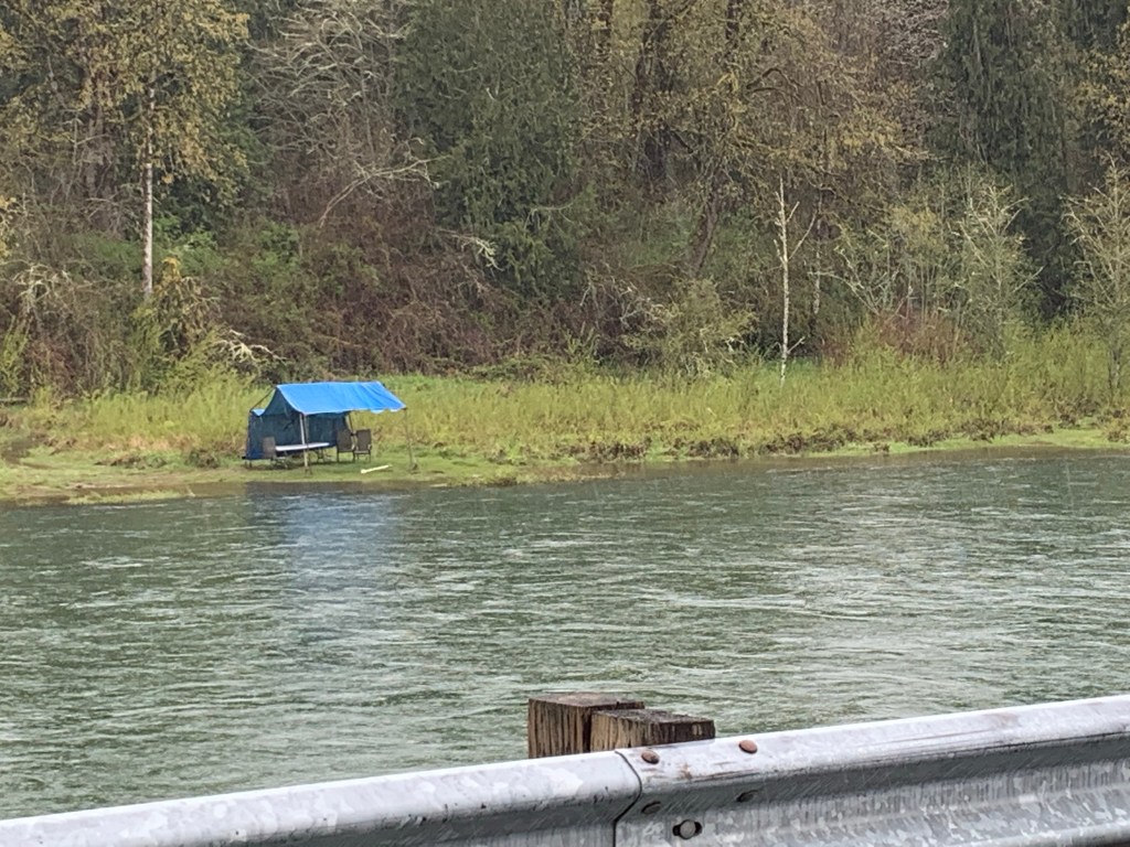 The weather for the week looks a little damp. A decision to ride today was going to be made prior to 0630. Alan said at least it’s mostly flat today. With a temperature of 46°and a discussion & NO Plan they decided I was to meet them about 8 miles up the road for further evaluation. as soon as we got outside in the parking lot of the motel there were sprinkle drops on the pavement. They mounted their rides before 0730 and took off. I’m at the rendezvous spot in Castle Rock WA awaiting their arrival and it’s more than a sprinkle now.