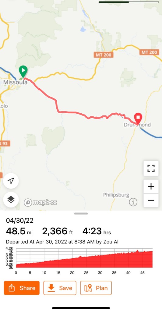 Day 14. Milltown MT to Drummond MT. 49 miles. 2367 feet of climb. Third day of 3pm rain.