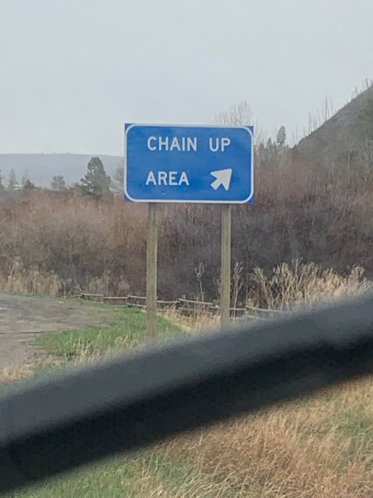 Great story. For the first time, Alan put on rain pants and used a bungee cord to keep the pants out of the chain. The bungee was too loose and ineffective. We played the ‘roadside scavenger game’, and found a shoe, which was covered in ants. We used its shoelace, and cut it in half using a nearby piece of broken glass. Alan then tied each pant leg using the discarded shoelace. It was a successful roadside scavenger hunt!