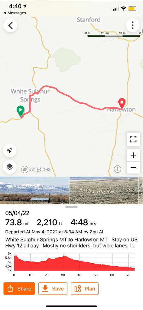 Day 18. (West of) White Sulphur Springs MT to Halloween MT. 74 miles. 2211 feet of climb.