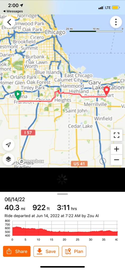 Day 39. Mokena IL to Hobart IN. 41 miles. 953 feet of climb. Extreme heat. Quit early- by 1pm.