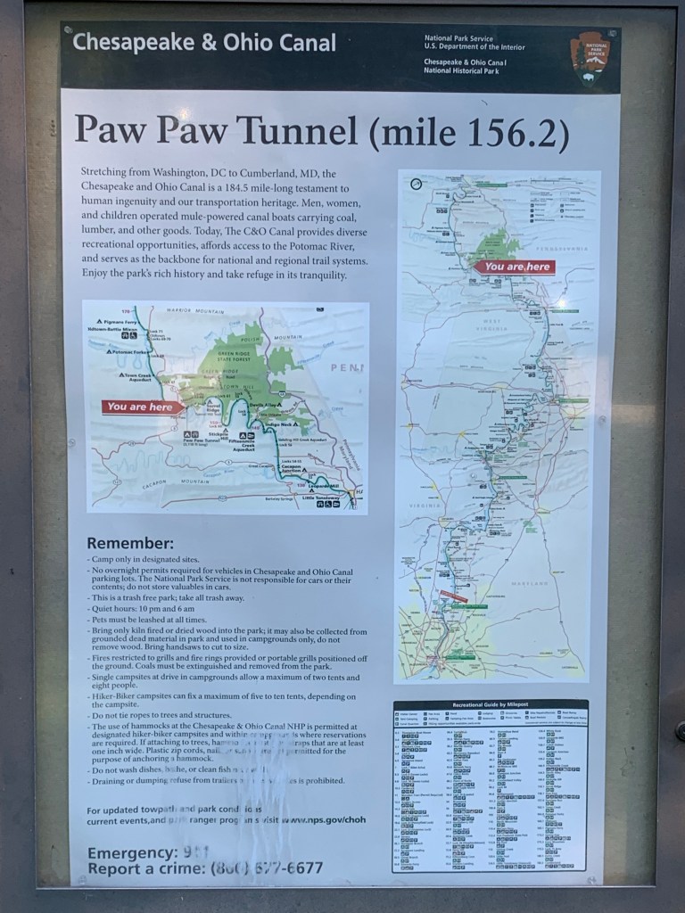 After a short break and discussion they were off to Little Orleans, but first they had to walk about 0.8 mile over the PawPaw Tunnel since it is closed. I told them I’d see them in 13 miles.